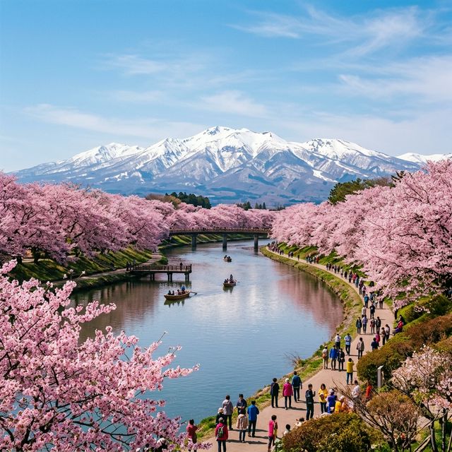 白石川の清流と、淡いピンク色の桜並木。そして蔵王の山々が織りなす「一目千本桜」は、一生に一度は見たい日本の絶景です。